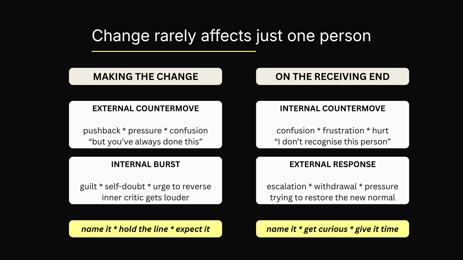 Change is hard in a very specific way. Not because it’s impossible. But because there’s a point where it asks more of you than you expected, whether you're the one making the change, or the one living alongside it.