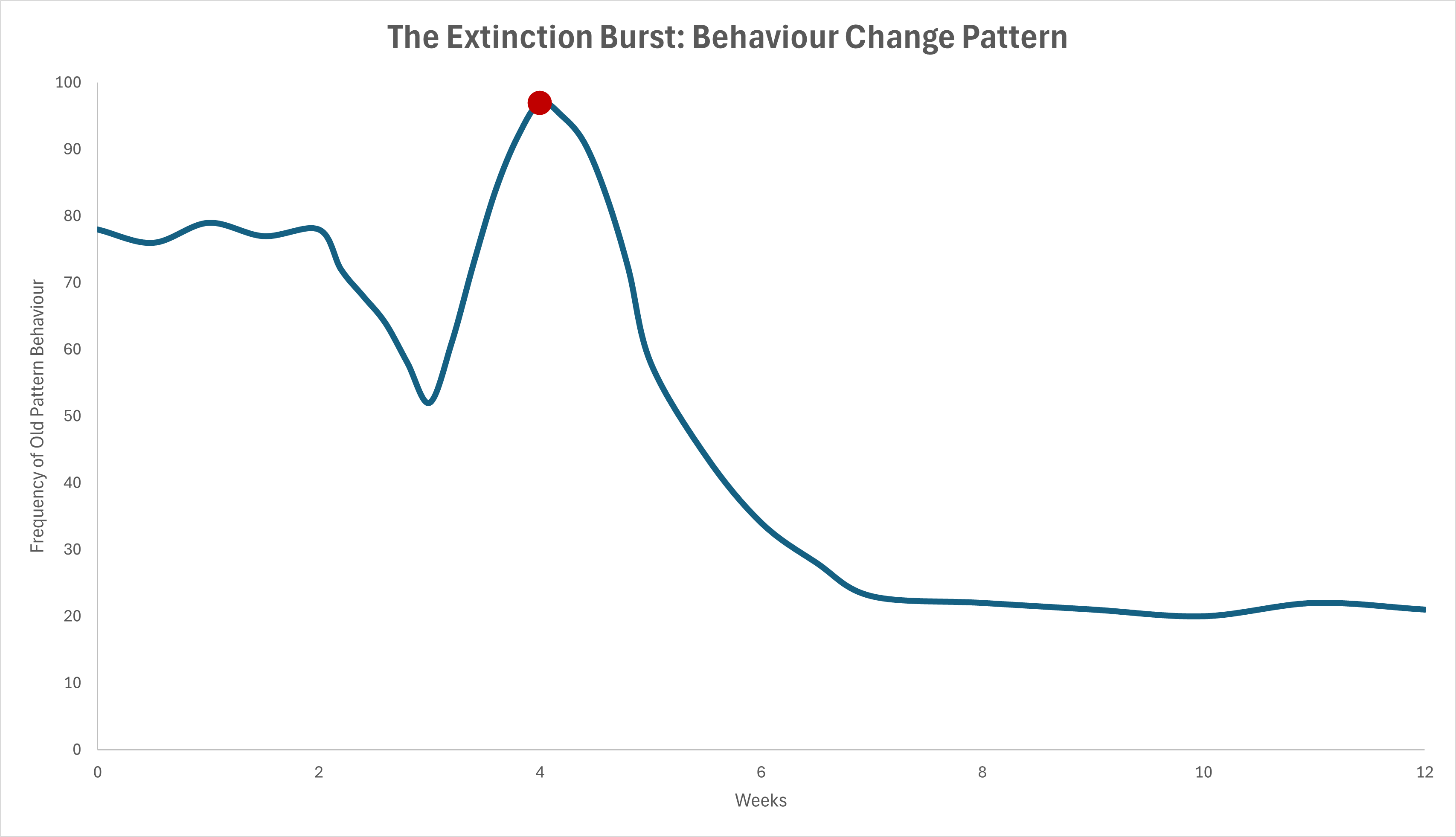 Many people abandon change during the extinction burst because it gets harder, and harder feels like evidence that something has gone wrong.